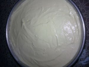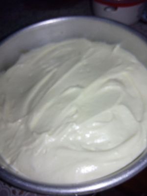 倒入剩余的奶油奶酪糊,用刮刀刮平,盖盖放冰箱冷藏4个小时以上。