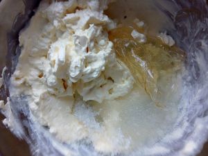 马斯卡彭奶酪加入香草籽,搅拌至均匀顺滑。