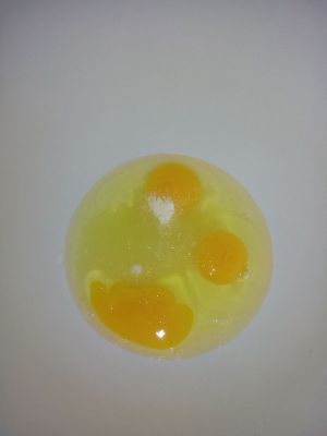 取三颗鸡蛋磕入打蛋桶,加入40克糖,高速打发。