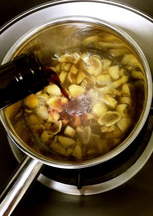 煮开后转小火,分别加入肉桂粉、蜂蜜,熬成粘稠一点儿的无花果蜜,晾凉备用。