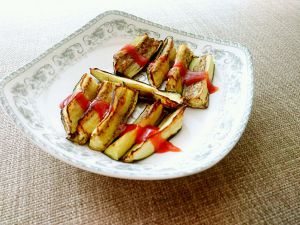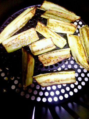 炸锅200度预热五分钟,放入茄子200度,三分钟,撒盐和糖,再200度五分钟。
