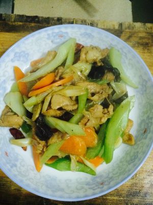 把切好的菜全部倒锅里,大火翻炒几下放盐和鸡精!就可以出锅了!