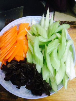 把芹菜,胡萝卜,木耳洗净切片待用!