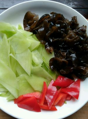 木耳泡发后撕成小朵青芛切斜片之