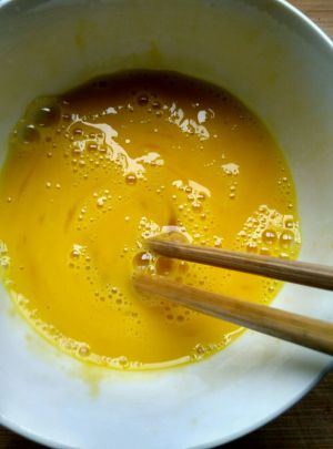 两个鸡蛋加少许清水打散,