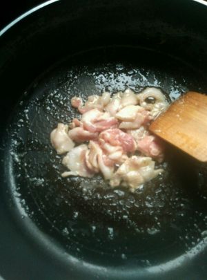锅中放油,将猪肉炒至变色,盛出备用。
