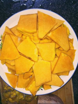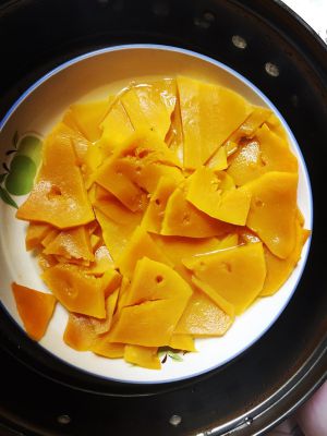 南瓜切小块,冷水上蒸锅,大火蒸20分钟。