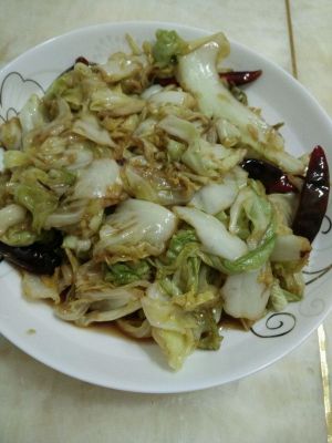 热锅凉油,又热先放蒜瓣,炒出香味(想吃辣的可以在放些辣椒),下入包菜翻炒