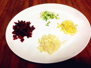 生姜大蒜切沫备用,葱头切小粒儿,干辣椒过冷水沥干备用