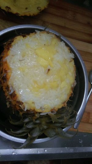 把蒸好的糯米与泡过糖水的菠萝伴在一起!