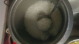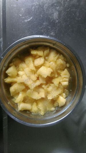 将菠萝肉用白糖泡起来,这时糯米也该下锅蒸了!