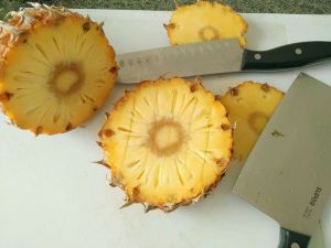 根据自己后期摆盘去改刀菠萝。