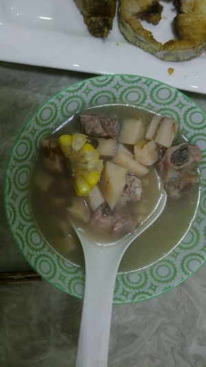 准备好所有的东西后,按照以下顺序放进高压锅,排骨——玉米——萝卜。这时放入排骨之后需要放一些冰糖(由于玉米本来就是甜的,所以冰糖可以少放点),然后加入酱油,醋少许,撒上盐。一直炖到高压锅发出声音了,再往上拧成小火慢炖10-12分钟(我这个是小排骨,所以炖的时间少一些,如果你是大排骨的,就要炖15-20分钟了)。炖好后,掀锅撒上一些葱,搅拌均匀后再焖一会儿就可以吃了。