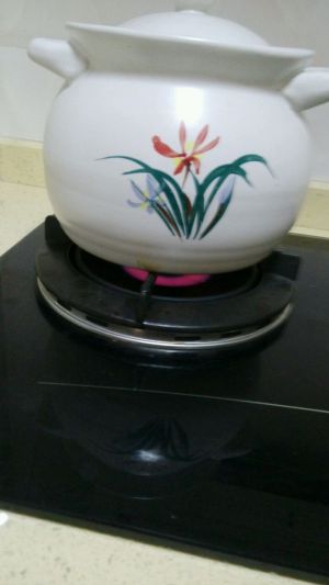 开锅后,整个倒入炖锅里,小火慢炖一个小时,炖至肉离骨,加适量的盐调味,出锅时放上香菜,即可开动。
