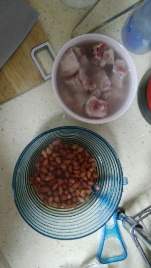 排骨洗净切段;莲藕去皮洗净,切成滚刀块;黄豆用清水先泡一会(无需泡发);