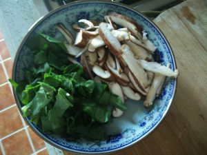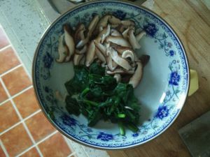 香菇、菠菜洗净,香菇切片,菠菜切小段