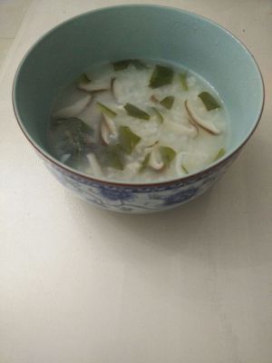 粥煮好后 加入鸡肉 香菇 萝卜煮至粘稠即可 加入适量盐 鸡精 调味就可以啦