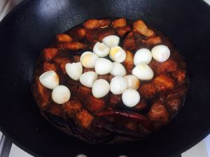 肉炖一会儿后可以放鹌鹑蛋(非常好吃哦!)