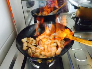 在放红方汁快速炒,小心糊锅哦!快干时放开水炖
