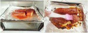第2天把肉拿出来,烤箱预热180度,上下火180度,烤40分钟后,刷一层蜜糖再烤5分钟