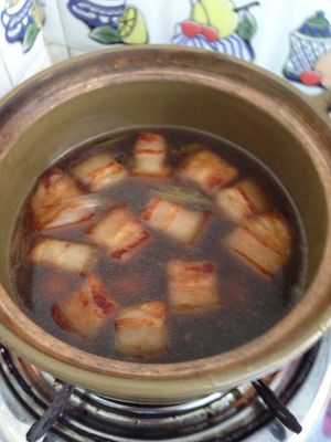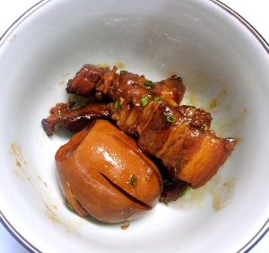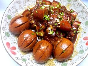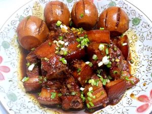 也可以在慢炖的同时加上几个煮熟的白煮蛋,去壳,划上几刀便于入味,将蛋放入锅中同肉一起炖。期间注意不要烧干,一小时后收汁,出锅前撒一把蒜末提香,几滴香醋去油腻。