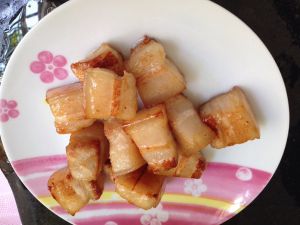 五花肉切成块状,用料酒,花椒粉腌制15分钟。