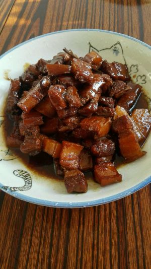 下炒过的大料,加水没过五花肉盖锅盖转中火,水开后转小火继续炖60分钟,中间要不时的看锅中的水是否还够,不够的话略微加些水,等到汤汁浓稠后加少许盐起锅,喜欢吃软一些的可以适时延长炖的时间