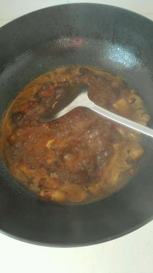 大火收汁一半左右,加入五香粉,黄油(家里有多的,不放也行),改中火