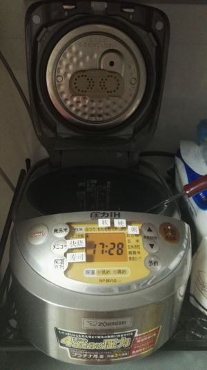 五花肉加水加料酒放入压力电饭煲中,随便选了个有压力的选项烧肉