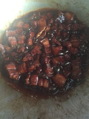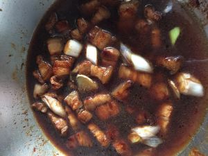 倒入可以末过猪肉的水,上锅盖焖煮至汤汁浓稠即可