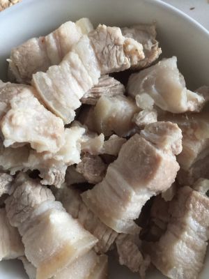 锅内放一丢丢油(肥肉自身带油),放点葱姜,五花肉煎至两面金黄,盛出备用!