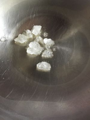 5、然后开始炒了,锅中放油烧热,放入冰糖