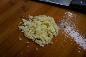 切块后,加入生姜末,料酒几滴,鸡蛋一只,食盐,一同放入料理搅拌机内搅成泥状;