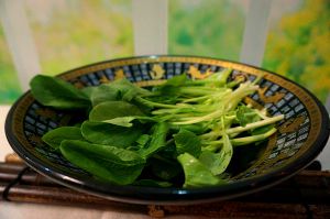生菜洗净,掰成小块儿,绰熟,放入大碗待用。