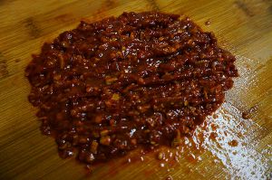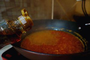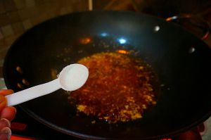 热锅注油,放入姜末,蒜末,豆瓣酱,小火炒香