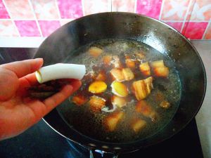加入葱、姜、八角和桂皮,调小火炖制1小时。