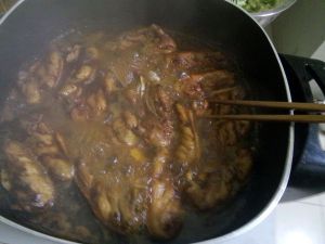 加入老抽,为什么不是酱油或生抽呢!因为老抽是上色的。这样就会让鸡翅的外观更漂亮。