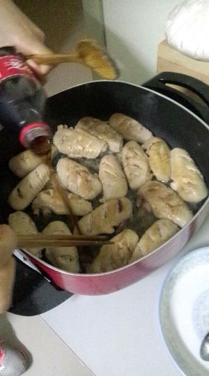 然后加入可乐,一瓶全部加入,锅中不加一滴水!
