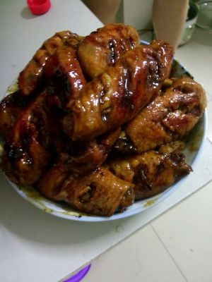 放入料酒适量-最好与鸡翅持平,生抽、老抽适量,葱姜段,干辣椒适量,我裹上保鲜膜放入冷藏一晚上,个人觉得半小时之类根本不入味,仅供参考。