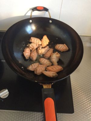 不粘的平底锅不放油直接起锅,带皮的一面冲下煎出油来再翻面煎,鸡翅变色后加少量生抽料酒蚝油翻炒至鸡翅慢慢有一点酱色