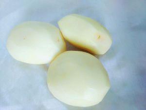 水烧开放油,土豆入锅再煮开30-40秒左右捞起