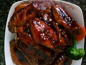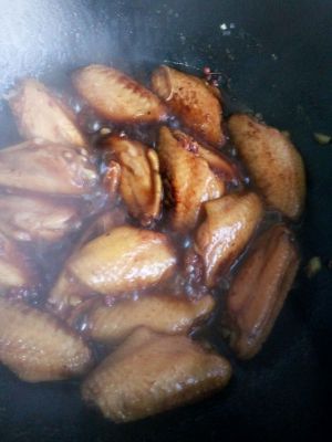 一直大火收汁。汤汁逐渐减少的情况下可用翻炒来加速。当汁浓全部包裹在鸡翅上即可出锅。