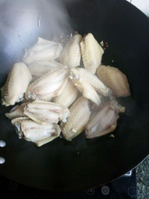 放入鸡翅翻炒三分钟
