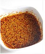起锅倒入油,约炒菜油的2倍,小火油热后放入花椒和2个大料,炸出香味,然后吧花椒和大料捞出,油大约9成热的时候(冒烟),把油倒入辣椒末蒜蓉芝麻的碗中,搅拌均匀,待油稍微凉一些后放入盐,少量酱油,白醋