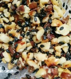 花椒,熟花生,芝麻用保鲜袋保住压碎