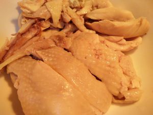第三步将冷却好的鸡肉,拿出切块摆盘