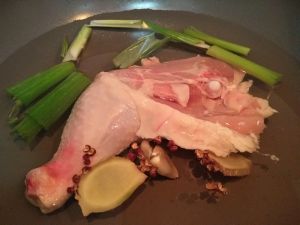 把鸡腿~用姜片~葱段~香叶~桂皮~加少许盐~煮熟~