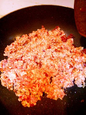 加水,跟肉糜齐平,放入生抽和老抽调味上色,然后大火收汁