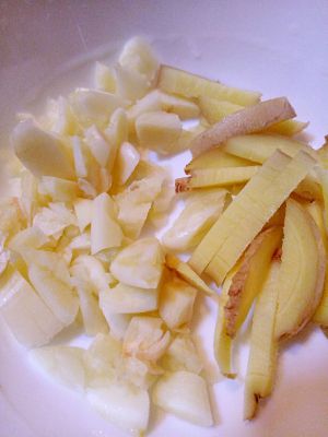 土豆去皮,切块放入水中浸泡一下,防止氧化变黑