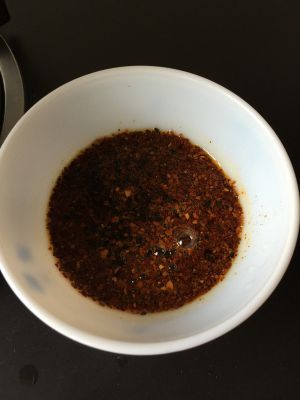 碗里放入辣椒粉 白芝麻 葱花 蒜末 小米辣浇上热油,然后加入陈醋 生抽 老抽 盐 糖 半碗白开水拌匀